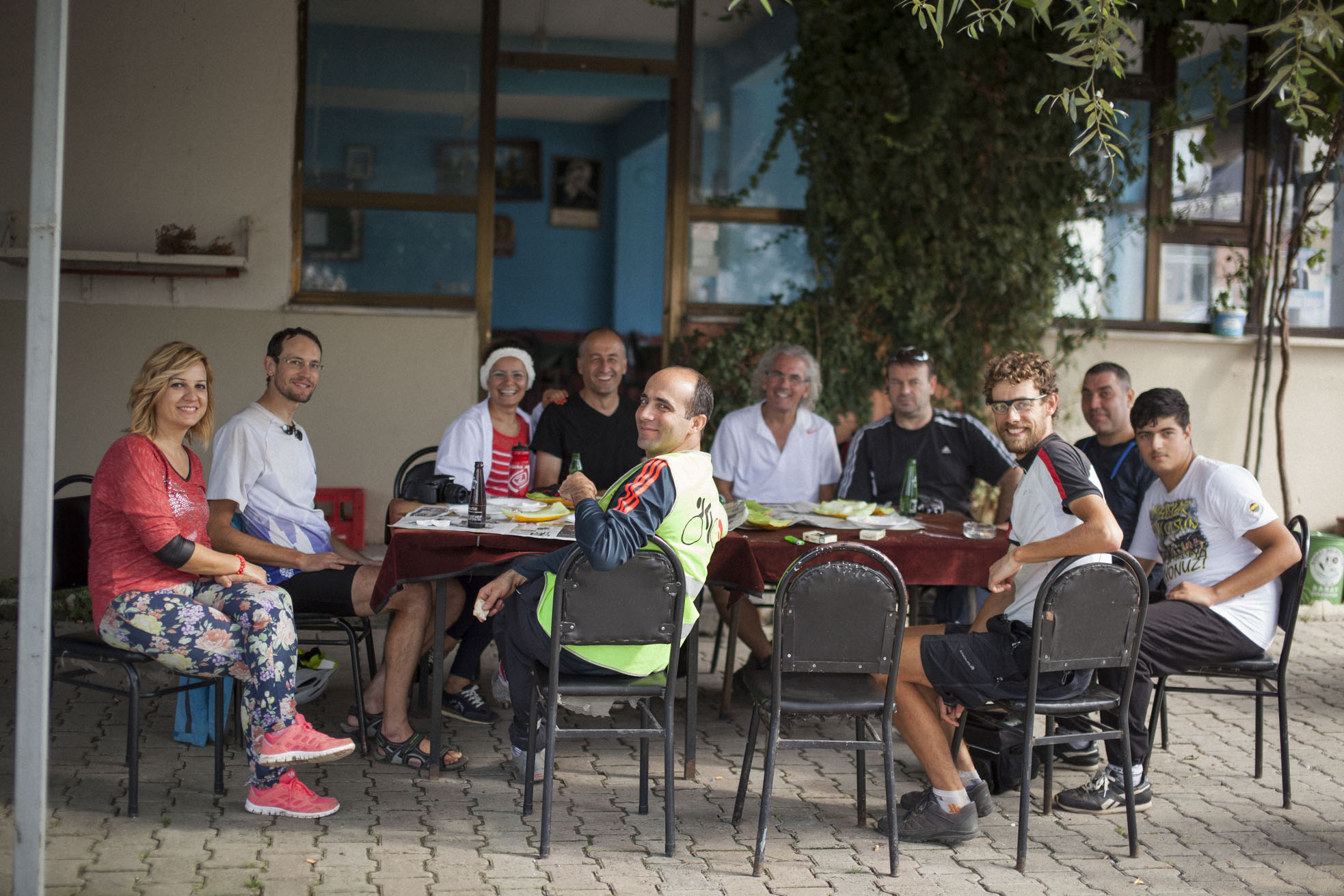 We met on that brief stop the members of the SBK-Saray Bisiklet Kulübü. They were coming back from one of their weekly bike trips and saw us on the road. They approached us and they were very kind to invite us to drink some çay (Turkish tea) and eat some ekmek (bread) with fresh cheese.
