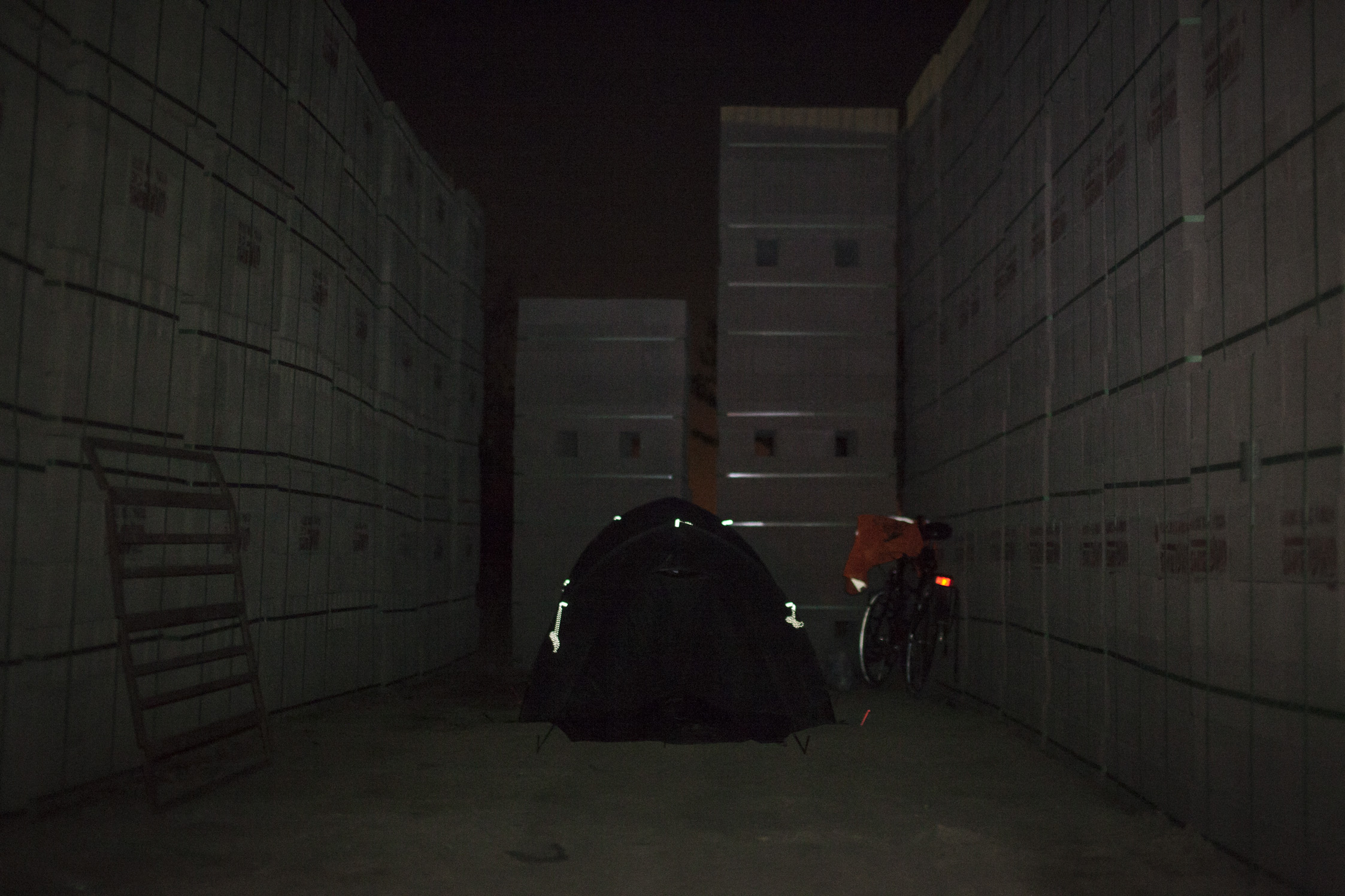 I went to the office and the task of explaining my intentions was a bit more difficult tan expected. First I tried to explain in English but nobody understood a word of what I was saying. Then I used the “Point it” book I carry with me, and that didn’t help. Luckily one of the guys let me use their computer so I could type in Google translate what my intentions were and then it was OK. I could camp in between the stacked bricks, out of sight and out of the wind. The Ünal bims brick manufacturing co. is a family run business. Two generations of Ünal work there. I met all the family while pitching up the tent, the father, the sons and their children. Everybody curious of what I was doing; where I came from; where I was going… When everything was ready they left me so I could have a good nights rest.