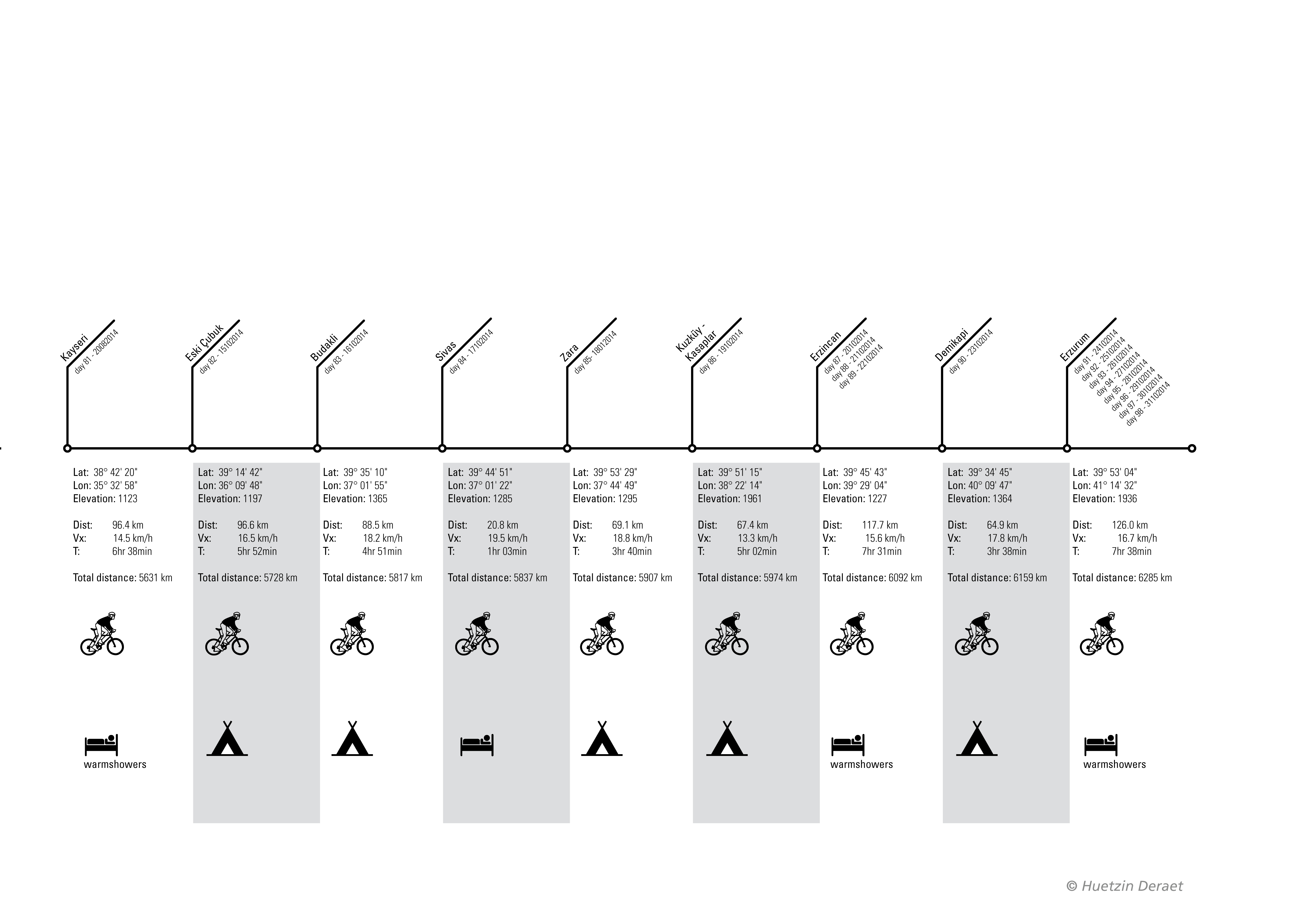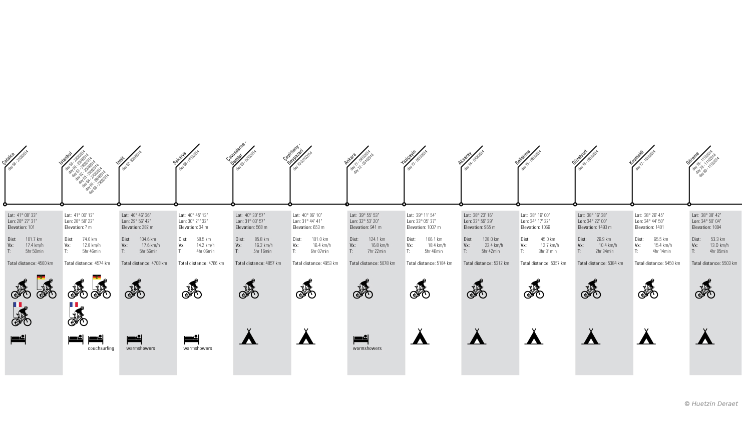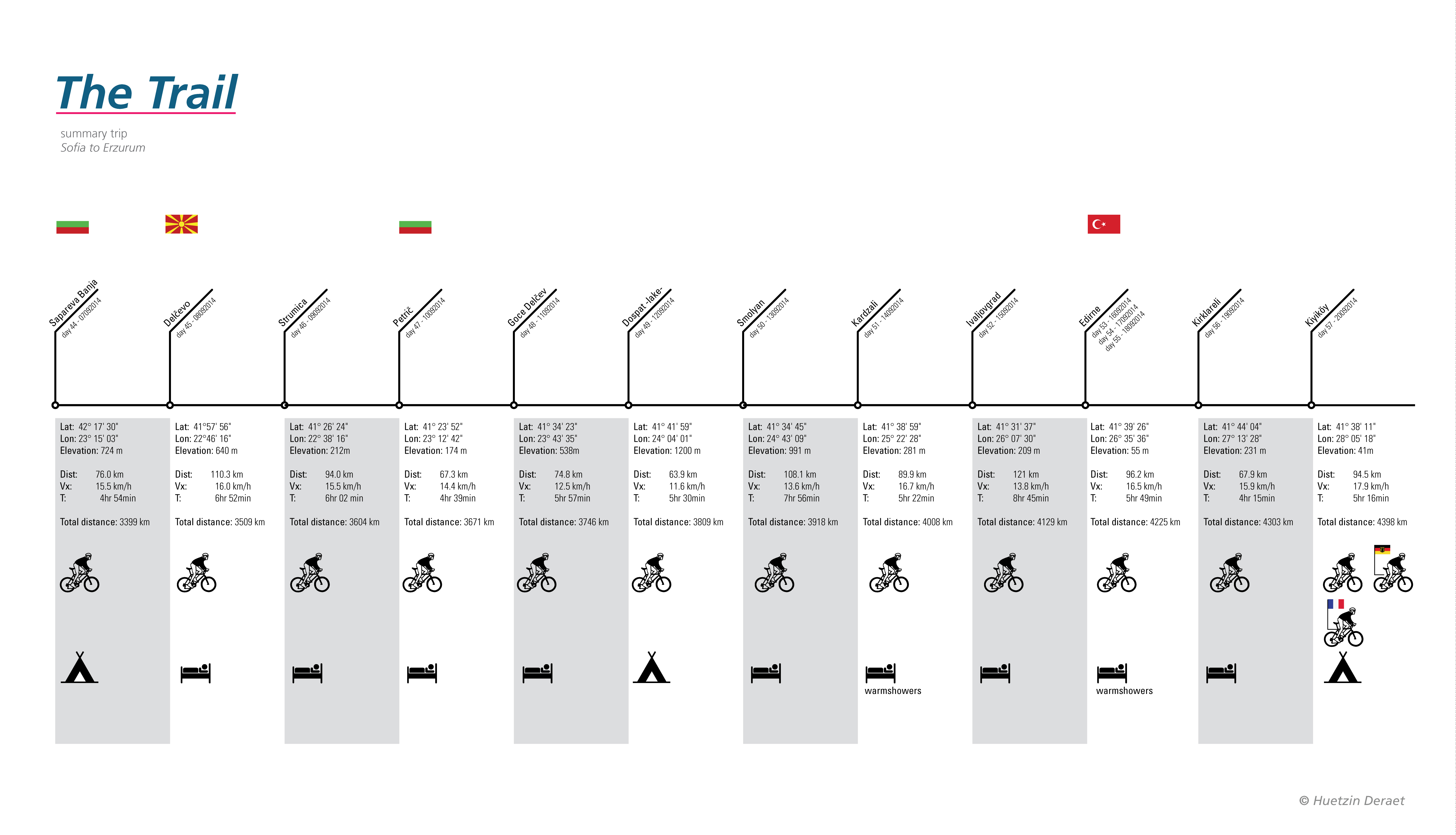 For those who like numbers. I prepared an image file with detailed GPS coordinates of the places I visited or slept. Distances traveled. If I traveled alone or with company. And if a slept in a tent, hostel or warmshowers